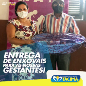 Pela segunda vez este ano, a Secretaria Municipal do Desenvolvimento Humano e Ação Social, presenteou as nossas gestantes com kits de enxoval na manhã desta terça-feira, 11 de maio.Receberam os kits, as gestantes a partir do 7° mês de gestação."Aliamos carinho e satisfação a todas elas, como também cuidados com a Pandemia", disse a Secretária Daiana Oliveira.Detalhe: seja da zona urbana ou mesmo da zona rural, as futuras Mamães receberam o singelo kit entregue pelo prefeito Xató